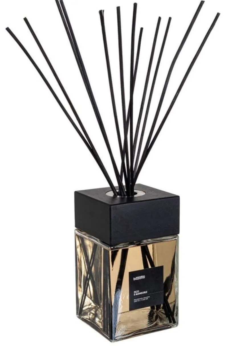 FICO E MANDORLE FRAGRANZA PER AMBIENTI CON 12 BASTONCINI NERI (H 60 CM). PROFUMO APPARTENENTE ALLA FAMIGLIA DEI FRUTTATI. BOTTIGLIA IN VETRO, FORMATO 2500 ML. CONTROTAPPO IN PLASTICA E TAPPO DECORATIVO IN LEGNO NERO. AREA DI COPERTURA OLTRE 120 MQ. FRAGRANZA INTENSA CHE COMBINA IL PROFUMO TIPICO DEL FICO MEDITERRANEO CON LE NOTE VIVACI DELLA MANDORLA. FRAGRANZA CONSIGLIATA