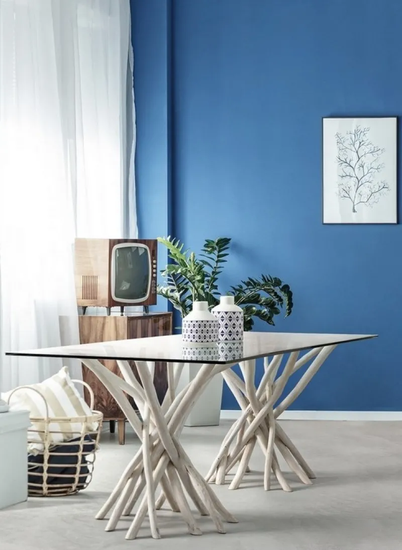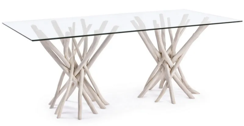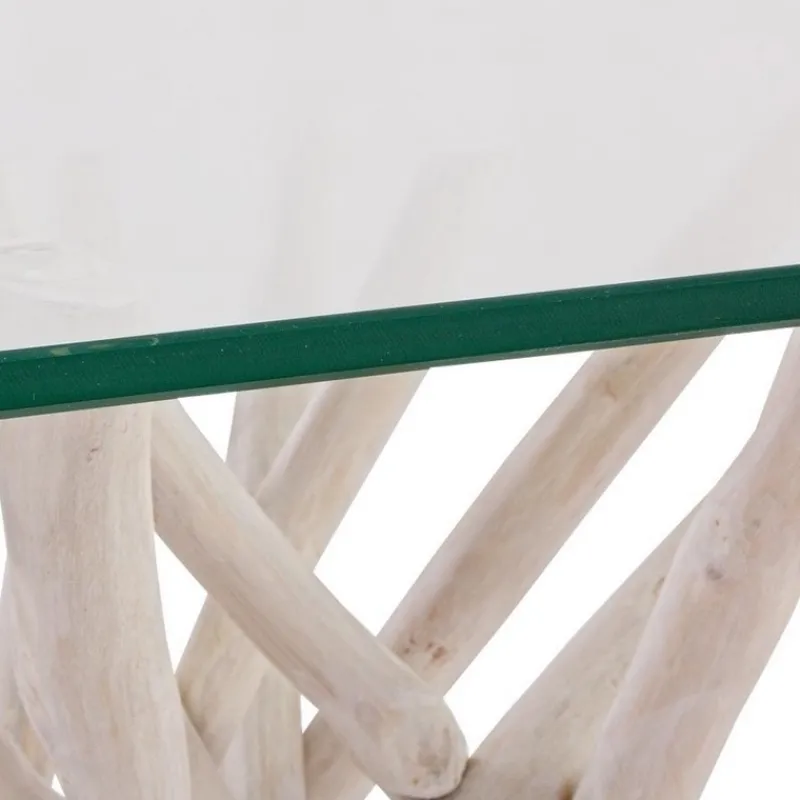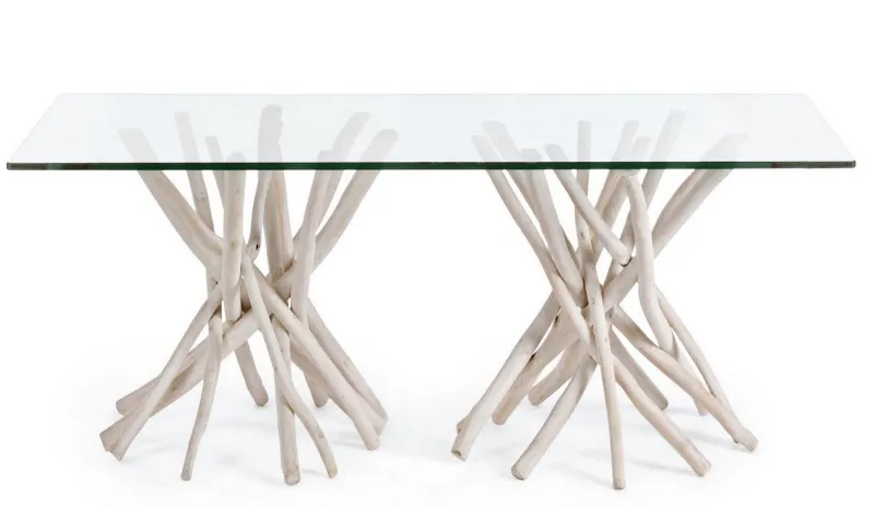 RAMI DI TEAK SBIANCATO CON FINITURA A BASE DI NITROCELLULOSA. VETRO TEMPERATO. SOLO PER USO INTERNO.