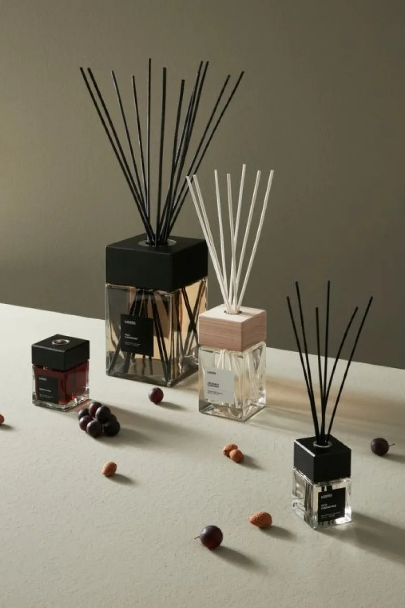 MOSTO ROSSO FRAGRANZA PER AMBIENTI CON 6 BASTONCINI NERI (H 30 CM). PROFUMO APPARTENENTE ALLA FAMIGLIA DEI FRUTTATI. BOTTIGLIA IN VETRO, FORMATO 200 ML. CONTROTAPPO IN PLASTICA E TAPPO DECORATIVO IN LEGNO NERO. AREA DI COPERTURA 40 MQ. FRAGRANZA INTENSA E FRUTTATA CON IL CARATTERE DOLCE DELL’UVA. FRAGRANZA CONSIGLIATA PER LA CUCINA ED IL SOGGIORNO. LIQUIDO E VAPORI