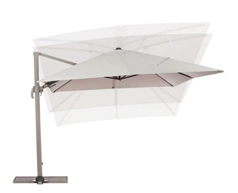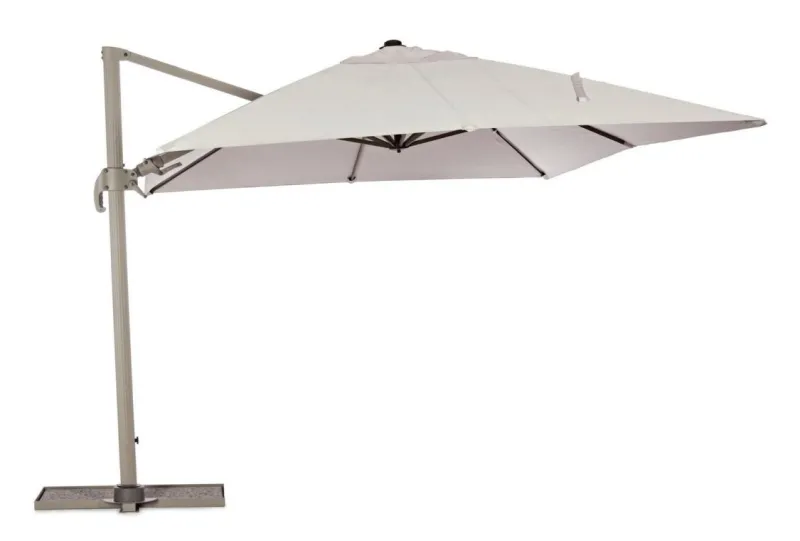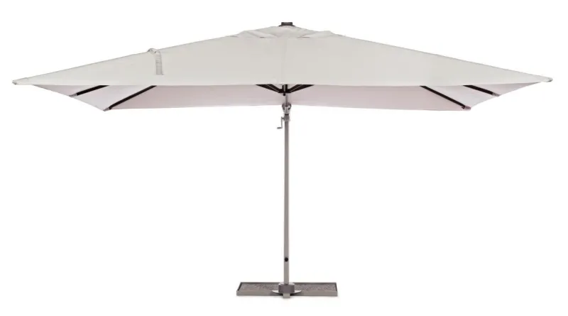STRUTTURA IN ALLUMINIO VERNICIATA A POLVERE (POLIESTERE). PALO 57x93x2.0MM. 8 STECCHE 25x17x1.0MM. TELO COLOR SABBIA IN POLIESTERE 250GR/M2 CON RIVESTIMENTO IN PA (POLIAMMIDE) CON CAMINO ANTIVENTO. BASE LATERALE IN ACCIAIO. PALO GIREVOLE 360° CON PEDALINA. INCLINAZIONE VERTICALE CON IMPUGNATURA A 5 POSIZIONI. DOTATO DI MANIGLIA PER INCLINAZIONE OMBRELLO DESTRA-SINISTRA. MARMETTE NON