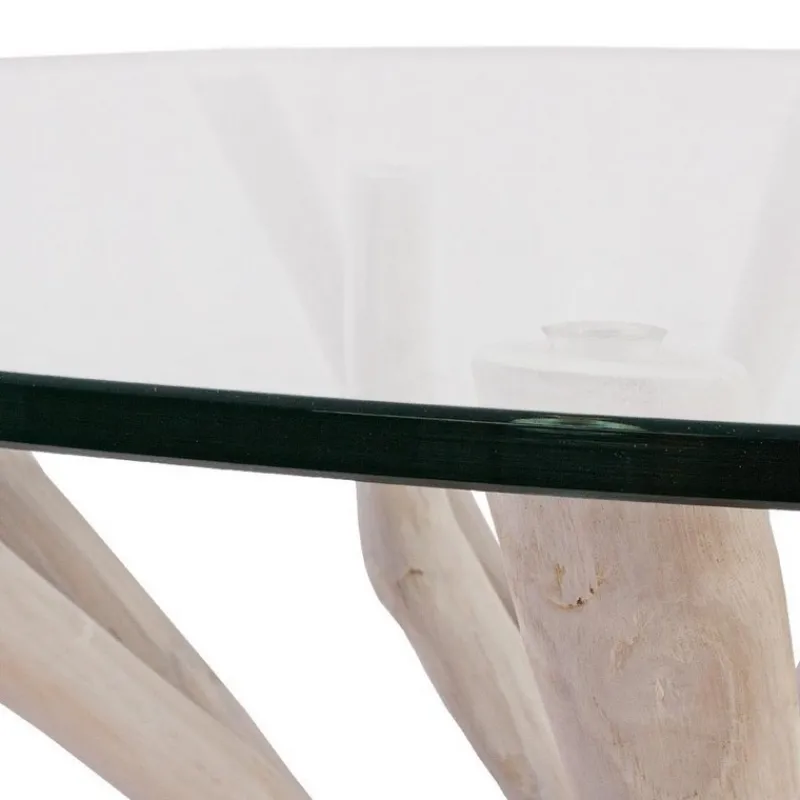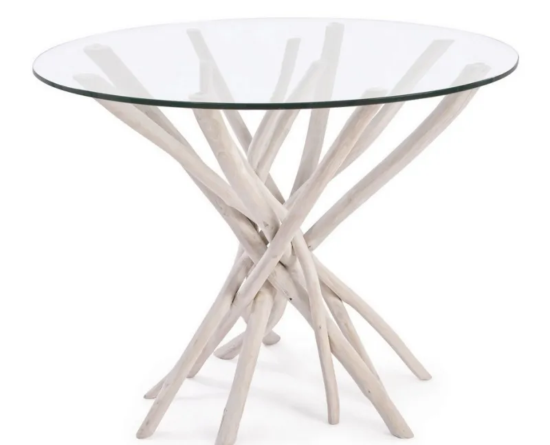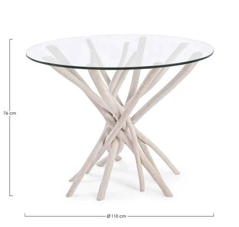 RAMI DI TEAK SBIANCATO CON FINITURA A BASE DI NITROCELLULOSA. VETRO TEMPERATO. SOLO PER USO INTERNO.