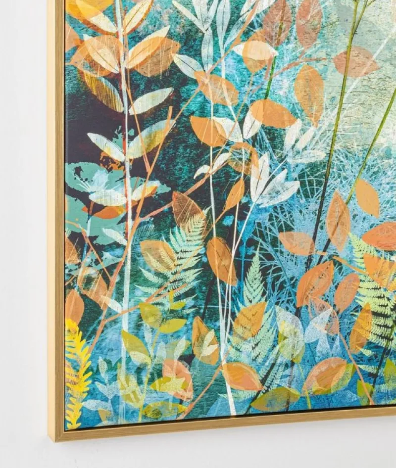 STAMPA SU TELA DIPINTA A MANO. STRUTTURA IN LEGNO DI PINO. CORNICE IN PLASTICA.