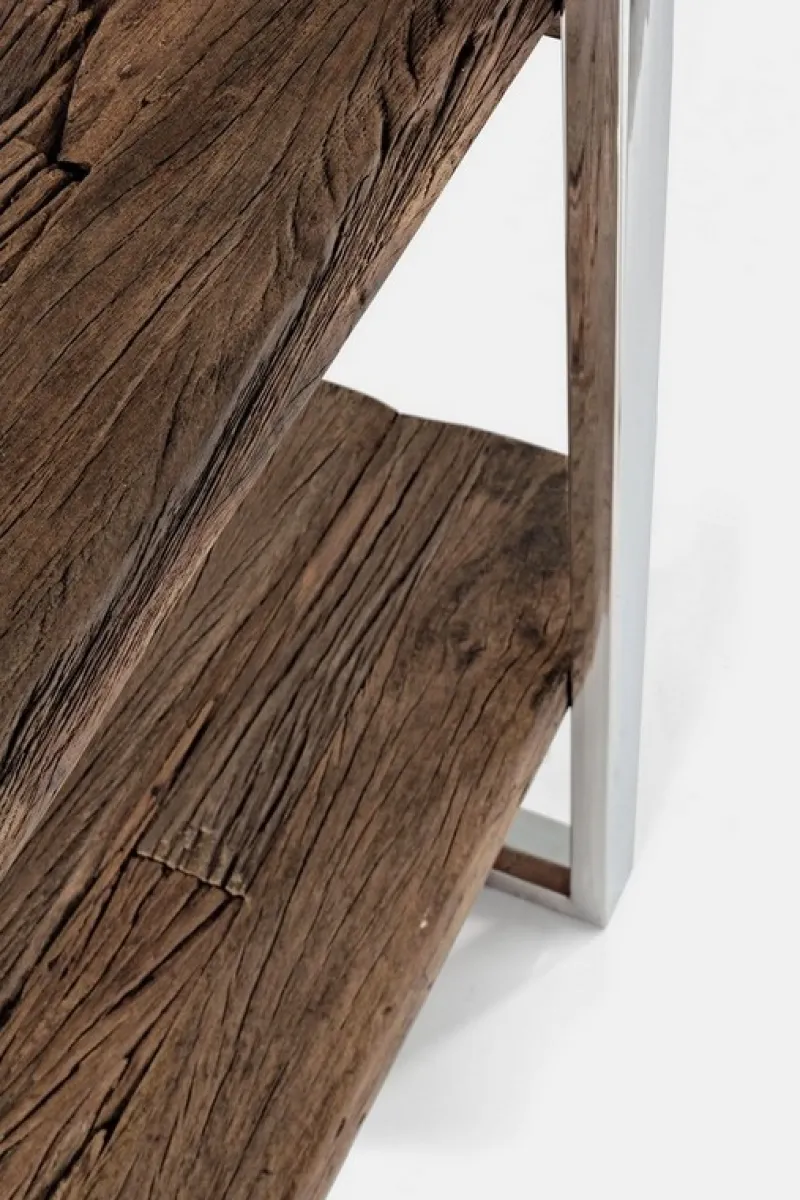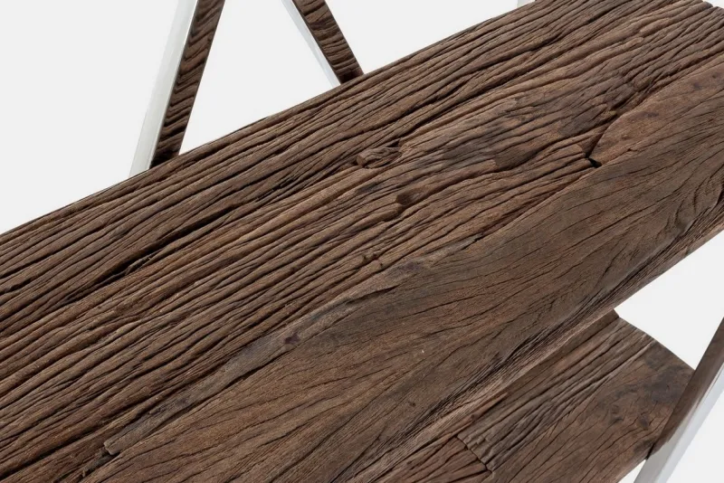 STRUTTURA IN ACCIAIO INOSSIDABILE, PIANI IN LEGNO RICICLATO. FINITURA NATURALE. IL PRODOTTO IN LEGNO RICICLATO È CARATTERIZZATO DALLA PRESENZA DI TASSELLI IN LEGNO DI DIVERSE SPECIE E COLORE. EVENTUALI FESSURE, CREPE O IMPERFEZIONI, CHE POSSONO GENERARSI ANCHE NEL CORSO DEL TEMPO, SONO CARATTERISTICHE DI QUESTO MATERIALE E RENDONO OGNI PEZZO UNICO E ORIGINALE.