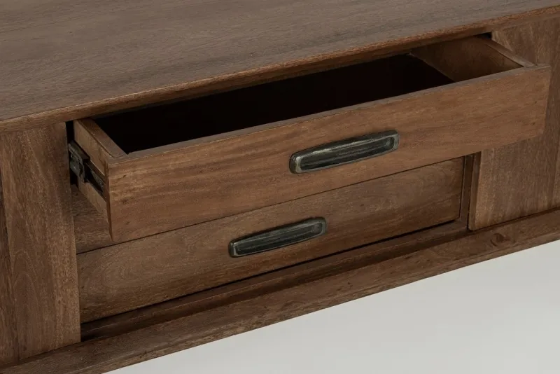 STRUTTURA E GAMBE IN LEGNO DI MANGO CON FINITURA A BASE D’ACQUA. SCHIENALE IN COMPENSATO. ANTE SCORREVOLI. MANIGLIE IN ACCIAIO. GAMBE DA ASSEMBLARE.