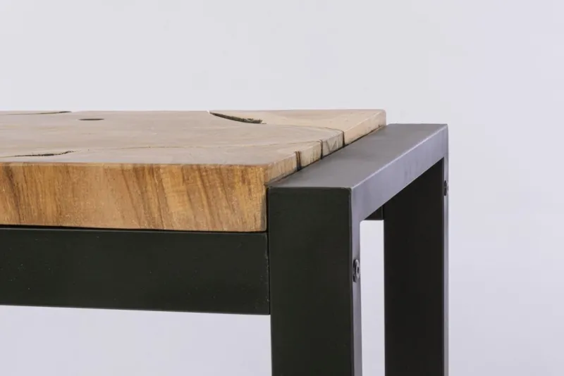 PIANO IN RADICI DI TEAK ORIGINALI. FINITURA A BASE DI NITROCELLULOSA. GAMBE IN ACCIAIO VERNICIATO. LE FORME ORIGINALI CREATE DAL LEGNO SONO SOLO INDICATIVE, TUTTI I PRODOTTI SARANNO DIVERSI L’UNO ALL’ALTRO, CON MISURE LEGGERMENTE DIFFERENTI. GAMBE DA ASSEMBLARE.