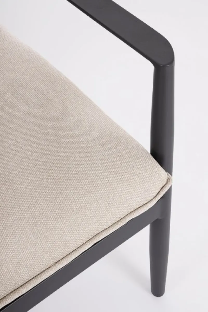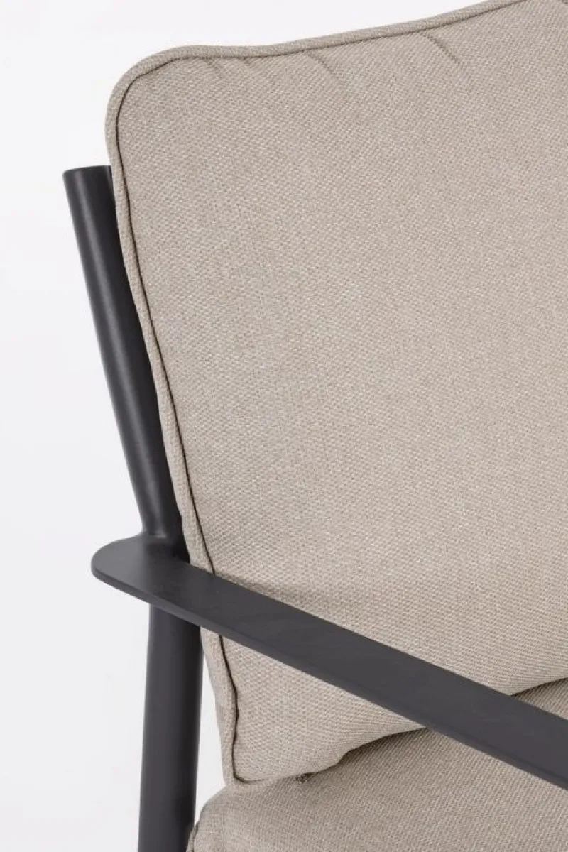 STRUTTURA IN ALLUMINIO VERNICIATO A POLVERE (POLIESTERE). CUSCINI SEDUTA E SCHIENALE SFODERABILI CON TESSUTO IDROREPELLENTE OLEFIN (100% POLIPROPILENE). GAMBE TAVOLINO (VITERIA IN ACCIAIO INOSSIDABILE) DA ASSEMBLARE.