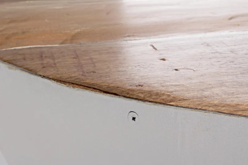 BASE ORIGINALE RICICLATA IN ACCIAIO, PIANO IN LEGNO RICICLATO. FINITURA A BASE DI NITROCELLULOSA. IL LEGNO RICICLATO PREVEDE IN PRODUZIONE RITAGLI DI LEGNO A COPERTURA DEI FORI ORIGINARIAMENTE PRESENTI NEL PRODOTTO. DATO L’UTILIZZO DI DIVERSE TIPOLOGIE DI LEGNO, EVENTUALI FESSURAZIONI SONO DA CONSIDERARSI COME CARATTERISTICA NATURALE DI QUESTO ARTICOLO.