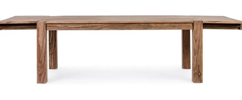 LEGNO SHEESHAM. FINITURA NATURALE. 2 PROLUNGHE INTEGRATE (APERTURA A FARFALLA) DA 50CM. GAMBE DA ASSEMBLARE.