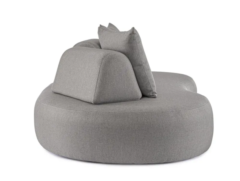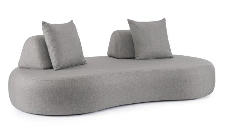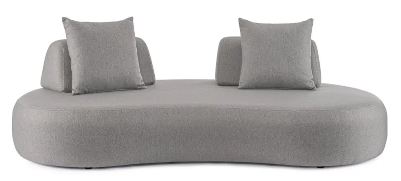 DIVANO CON STRUTTURA IN ALLUMINIO. SCHIENALI REMOVIBILI CON STRUTTURA IN ACCIAIO, GALVANIZZATA A CALDO E VERNICIATA A POLVERE (POLIESTERE). SCHIENALI E CUSCINI SFODERABILI IN TESSUTO PER ESTERNO OLEFIN (100% POLIPROPILENE, 285GR/M2), IDROREPELLENTE E RESISTENTE AI RAGGI UV (GRADO 7), IMPERMEABILIZZATO INTERNAMENTE CON RIVESTIMENTO IN TESSUTO (POLIURETANO). IMBOTTITURA IN SCHIUMA POLIURETANICA, DENSITA’ SEDUTA 38KG/M3, SCHIENALI 20KG/M3. ARTICOLO COMPOSTO DA: N °1 DIVANO, N°2 SCHIENALI MEZZALUNA, N°2 CUSCINETTI.