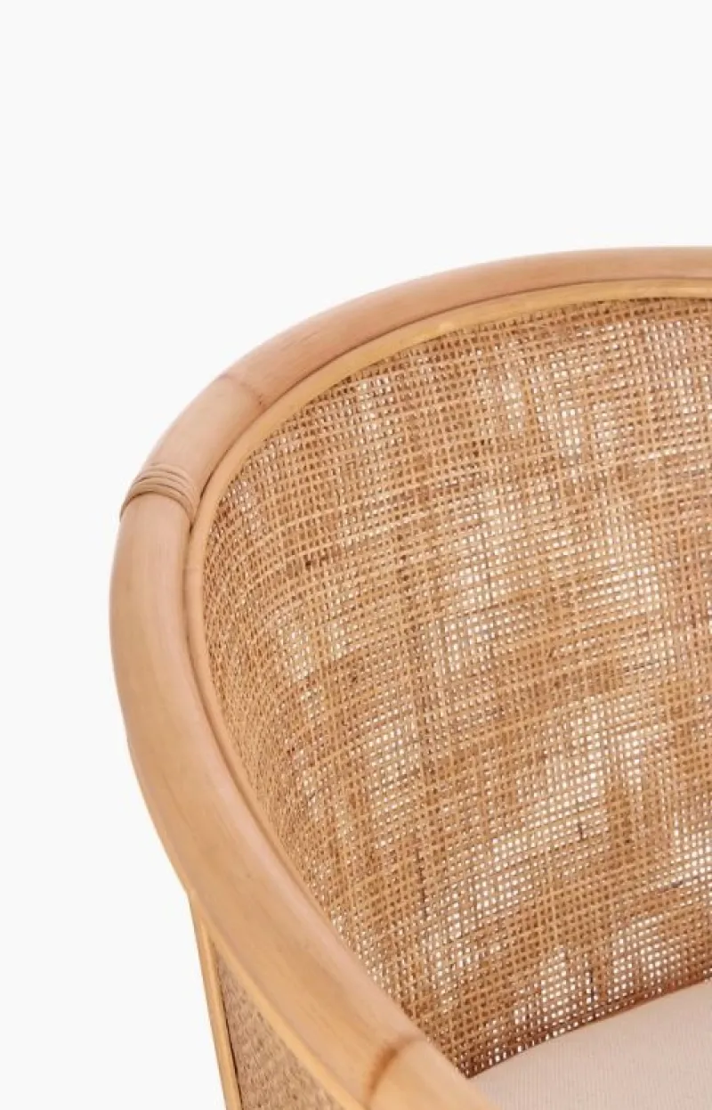 STRUTTURA IN RATTAN, INTRECCIO IN RATTAN. FINITURA A BASE DI NITROCELLULOSA. CUSCINO SFODERABILE CON TESSUTO PER USO INTERNO (30% COTONE, 30% LINO, 40% POLIESTERE)SI RACCOMANDA DI NON ESPORRE L’ARTICOLO ALLA LUCE DIRETTA DEL SOLE E ALLE INTEMPERIE. IMBALLO SENZA CARTONE.