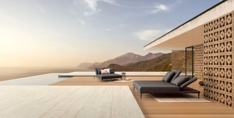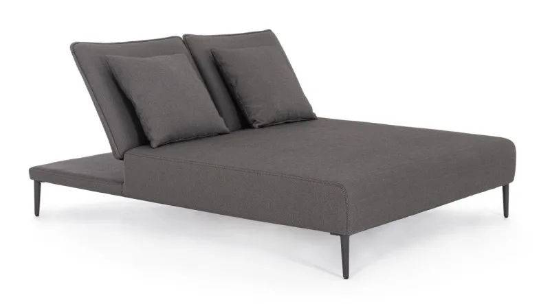 STRUTTURA IN ALLUMINIO. SEDUTA E SCHIENALE (RECLINABILE IN LIBERA POSIZIONE) NON SFODERABILI IN TESSUTO PER ESTERNO IN OLEFIN (100% POLIPROPILENE, 285GR/M2), IDROREPELLENTE E RESISTENTE AI RAGGI UV (GRADO 7), IMPERMEABILIZZATO INTERNAMENTE CON RIVESTIMENTO IN TESSUTO (POLIURETANO). IMBOTTITURA IN SCHIUMA POLIURETANICA, DENSITA’ 40KG/M3. INCLUSO DI