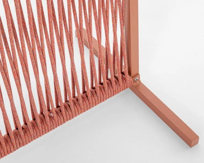 STRUTTURA IN ALLUMINIO VERNICIATO A POLVERE (POLIESTERE). INTRECCIO CON CORDA IN OLEFIN (100% POLIPROPILENE). PIEDINI DA ASSEMBLARE.