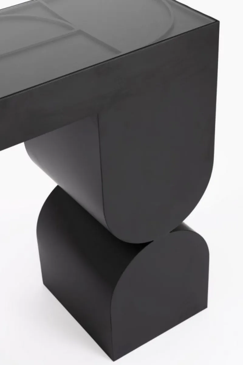 STRUTTURA IN ACCIAIO VERNICIATO A POLVERE EPOSSIDICA. PIANO IN VETRO TEMPERATO.