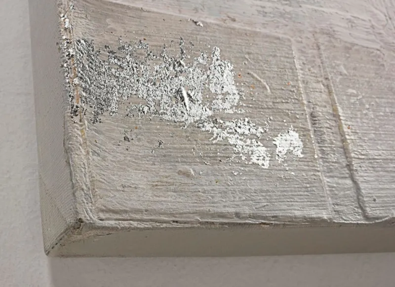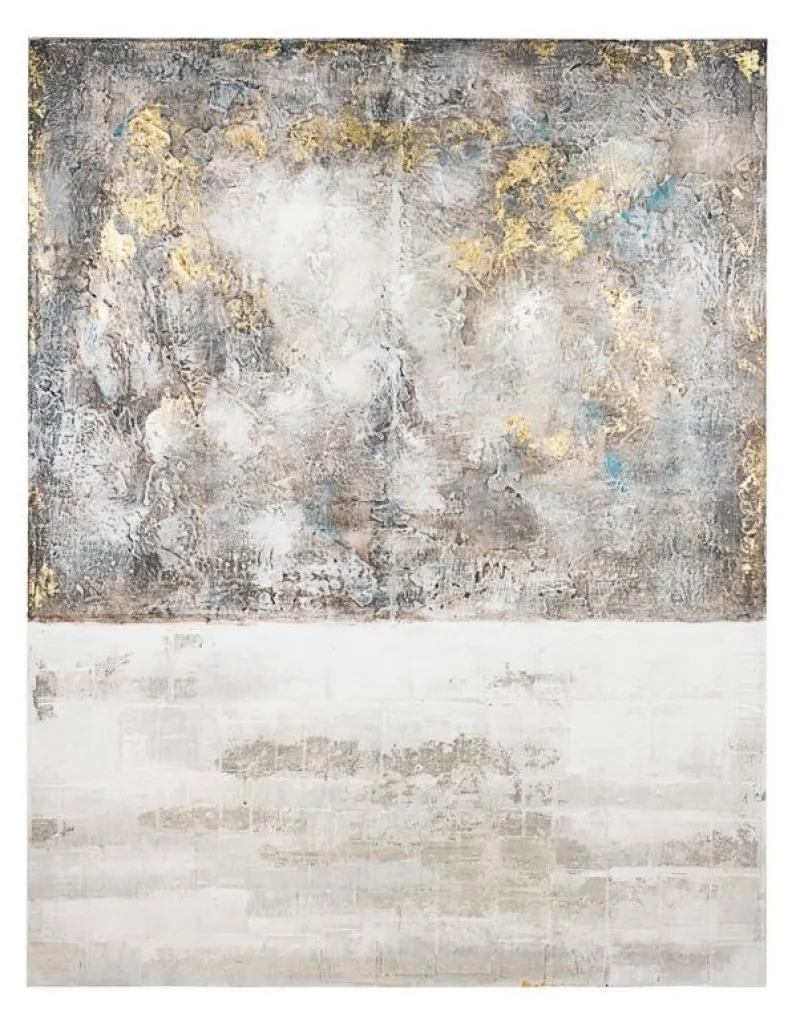 DIPINTO OLIO A MANO SU TELA CON APPLICAZIONI FOGLI DORATI, LEGNO DI PINO.
