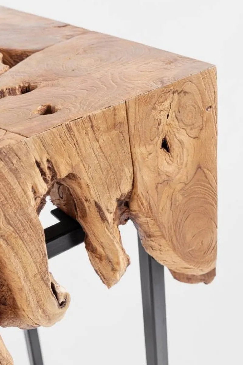 PIANO IN RADICI DI TEAK CON FINITURA A BASE D’ACQUA, BASE IN ACCIAIO VERNICIATO A POLVERE EPOSSIDICA. LE FORME CREATE DAL LEGNO SONO SOLO INDICATIVE, TUTTI I PRODOTTI SARANNO DIVERSI L’UNO DALL’ALTRO.