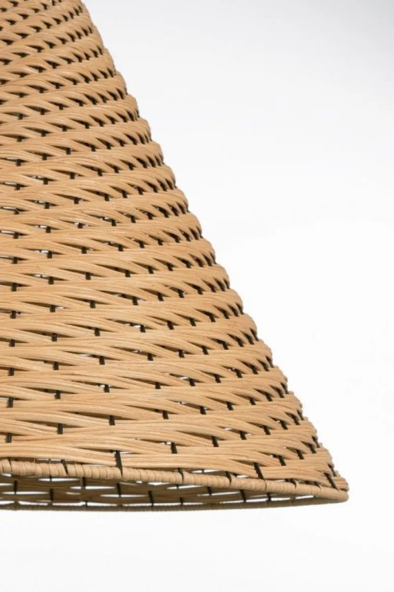 METALLO E RATTAN. LUNGHEZZA FILO 120 CM. LAMP. E27 MAX 40W, E27 8-11W COMP. FLUOR. INTEGR. RISP. EN., E27 28W ALOG. RISP. EN. LAMPADINA NON INCLUSA. IP20.