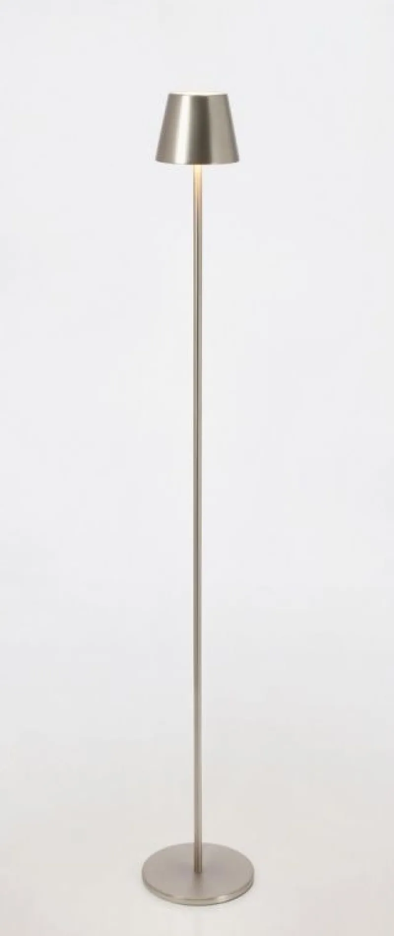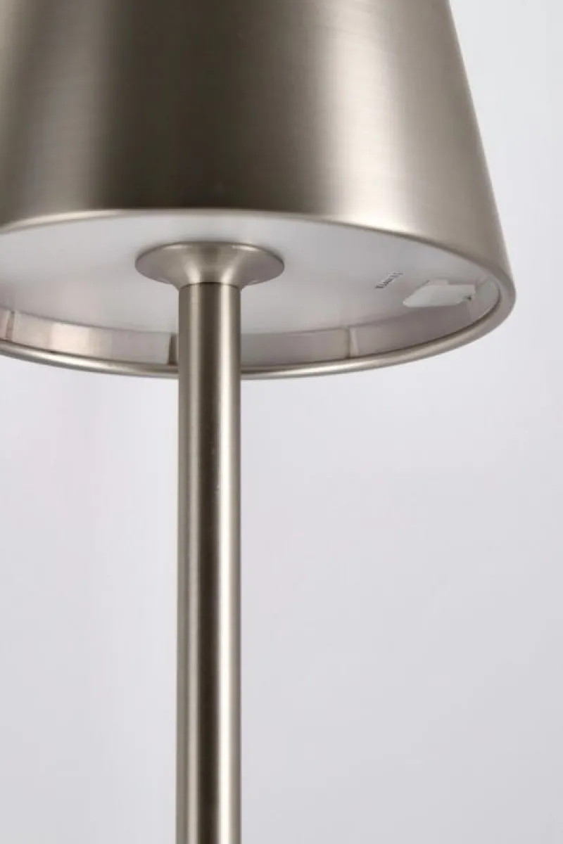 METALLO TRATTATO CON ELETTROPLACCATURA, LAMPADA LED, BATTERIA RICARICABILE CON CAVO USB 2,5 MT INCLUSO. TASTO ON/OFF TOUCH. PER USO INTERNO ED ESTERNO, IP54.