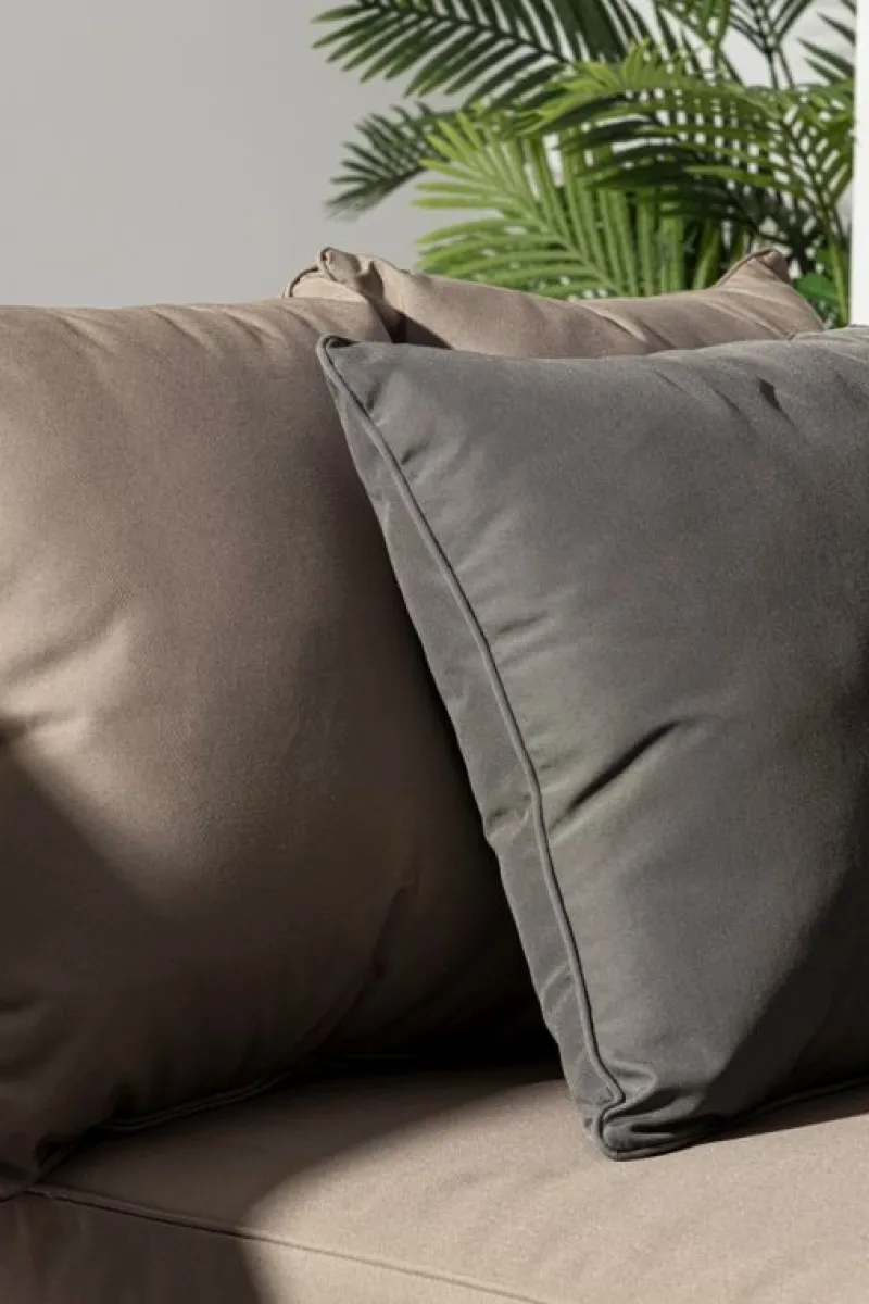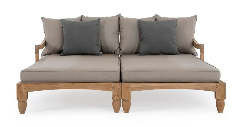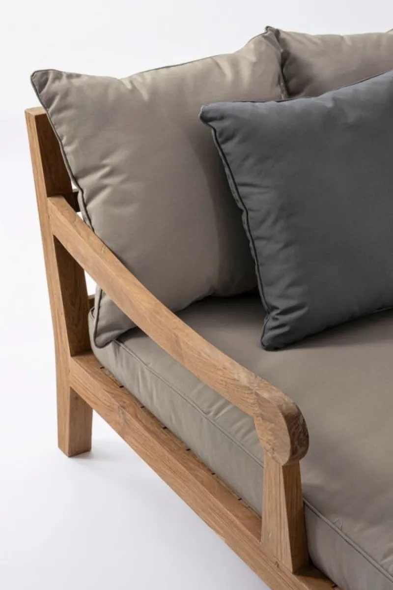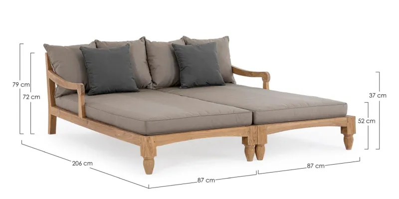 LEGNO TEAK FSC 100%, FINITURA SABBIATA ED ANTICATA A BASE D’ACQUA. CUSCINI SFODERABILI IN TESSUTO IDROREPELLENTE SUNPROOF OLEFIN (100% POLIPROPILENE). SI RACCOMANDA DI NON ESPORRE L’ARTICOLO ALLA LUCE DIRETTA DEL SOLE ED ALLE INTEMPERIE. QUESTO PRODOTTO È CARATTERIZZATO DALLA PRESENZA DI TASSELLI IN LEGNO DELLA STESSA NATURA. EVENTUALI FESSURE, CREPE O IMPERFEZIONI,