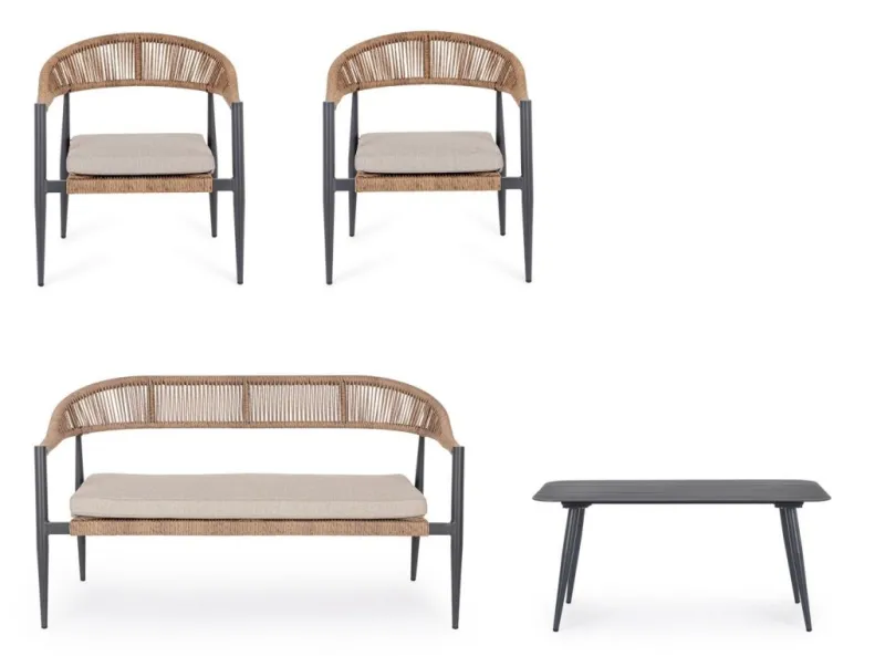 Hot Bizzotto SET4 SALOTTO C-C JANDIA ANTRACIT/NATURAL