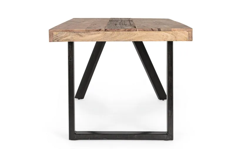 GAMBE IN ACCIAIO CON PIEDINI REGOLABILI, PIANO IN LEGNO DI MANGO E LEGNO RICICLATO. FINITURA ACRILICA PROTETTIVA. IL PRODOTTO IN LEGNO RICICLATO È CARATTERIZZATO DALLA PRESENZA DI TASSELLI IN LEGNO DI DIVERSE SPECIE E COLORE. EVENTUALI FESSURE, CREPE O IMPERFEZIONI, CHE POSSONO GENERARSI ANCHE NEL CORSO DEL TEMPO, SONO CARATTERISTICHE DI QUESTO MATERIALE E