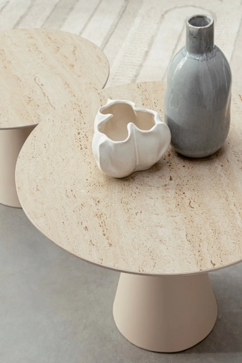 PIANO IN CERAMICA, EFFETTO TRAVERTINO. BASE IN ACCIAIO VERNICIATA A POLVERE EPOSSIDICA. BASE DA ASSEMBLARE.