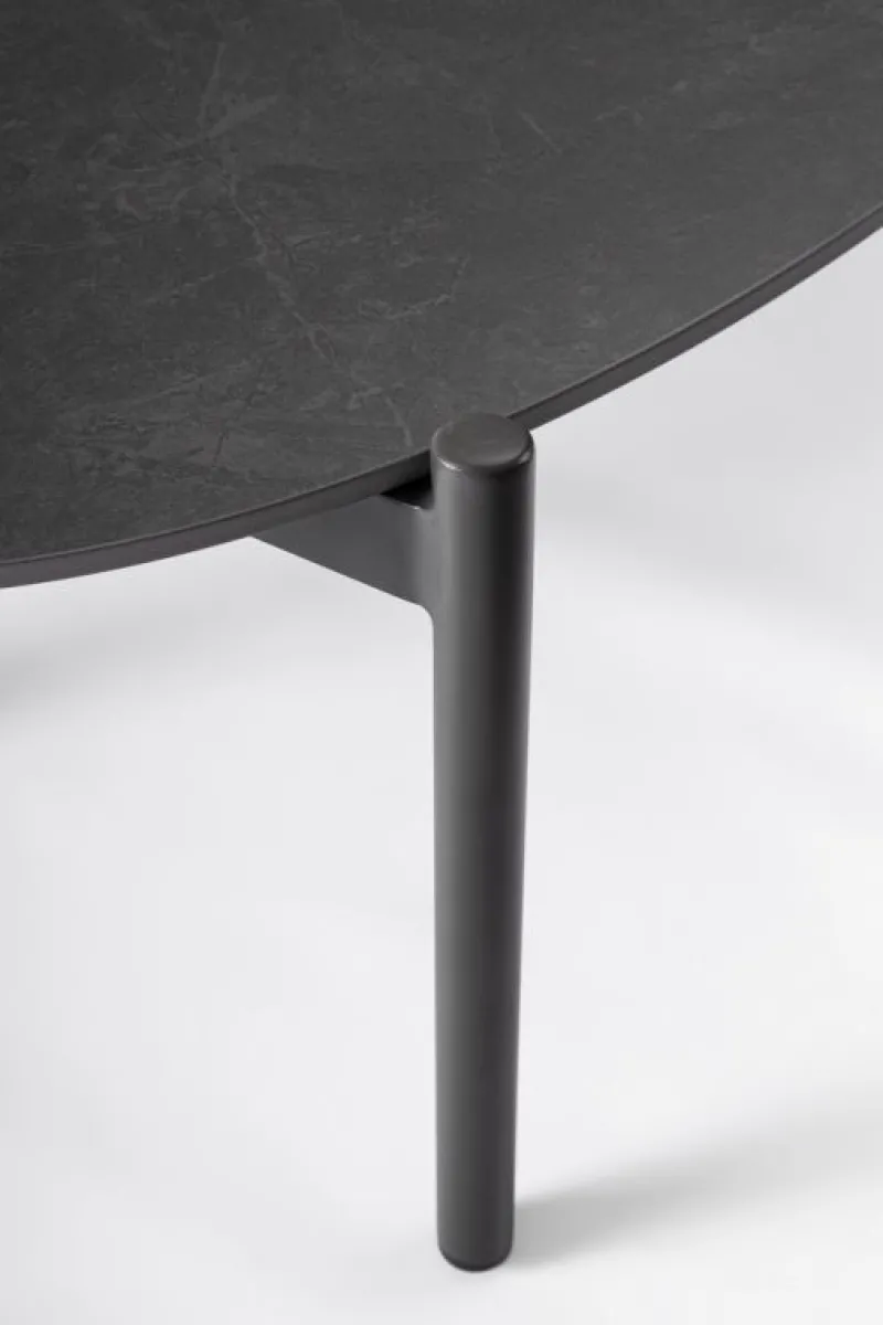 STRUTTURA IN ALLUMINIO VERNICIATA A POLVERE (POLIESTERE). INTRECCIO PER ESTERNO IN CORDA POLIESTERE. PIANO IN PIETRA SINTERIZZATA (PIETRA NATURALE LAVORATA AD ELEVATE TEMPERATURE)(SPESSORE 11MM). CUSCINI SFODERABILI IN TESSUTO IDROREPELLENTE 100% POLIESTERE. VITERIA IN ACCIAIO INOSSIDABILE. TAVOLINO DA ASSEMBLARE.