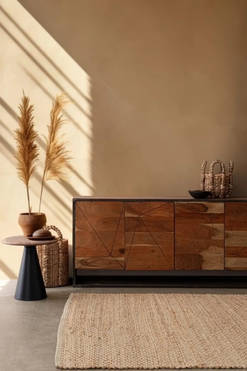 PIANO IN LEGNO DI ACACIA, FINITURA NATURALE. BASE IN ACCIAIO VERNICIATA A POLVERE EPOSSIDICA.