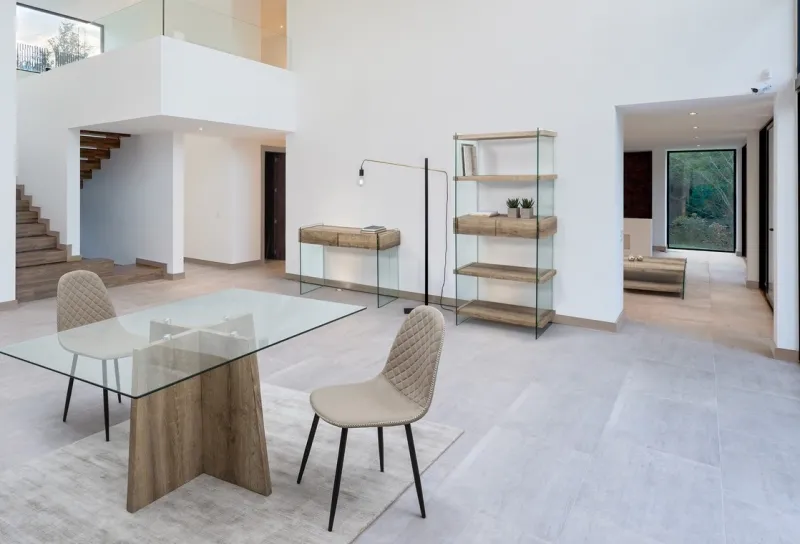 MDF RIVESTITO CON CARTA MELAMINICA EFFETTO LEGNO. FIANCHI IN VETRO NON TEMPERATO SPESSORE 12MM. DA ASSEMBLARE.