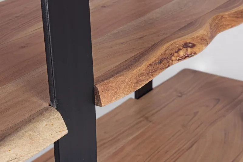 PIANI IN LEGNO DI ACACIA, STRUTTURA IN ACCIAIO VERNICIATO A POLVERE EPOSSIDICA. FINITURA A BASE DI VERNICE POLIURETANICA.