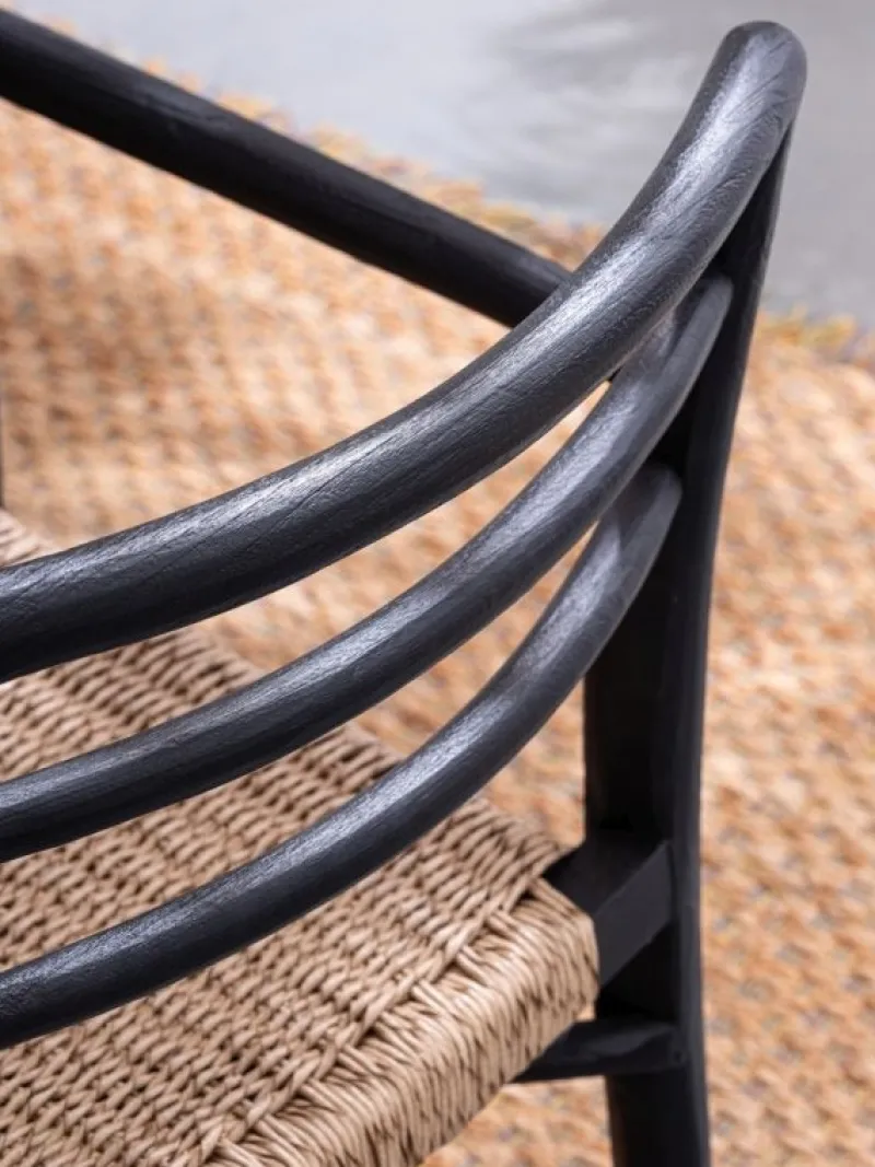 STRUTTURA IN LEGNO TEAK – SVLK (LEGNO CERTIFICATO PROVENIENTE DA FORESTE SOSTENIBILI). FINITURA RUSTICA CON VERNICE A BASE ACRILICA. SEDUTA CON INTRECCIO IN FIBRA SINTETICA. QUESTO PRODOTTO È CARATTERIZZATO DALLA PRESENZA DI TASSELLI IN LEGNO DELLA STESSA NATURA. EVENTUALI FESSURE, CREPE O IMPERFEZIONI, CHE POSSONO GENERARSI ANCHE NEL CORSO DEL TEMPO, SONO CARATTERISTICHE DI QUESTO MATERIALE E RENDONO OGNI PEZZO UNICO E ORIGINALE. IMPILABILE.