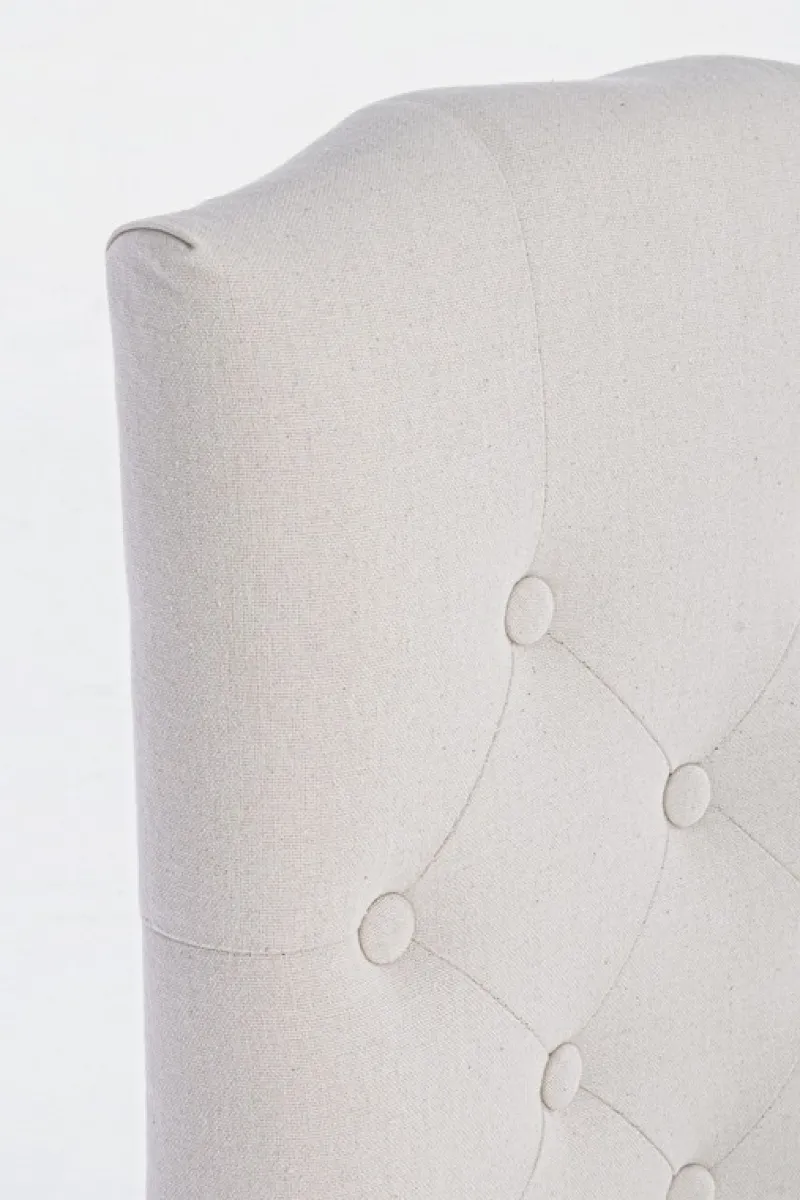 STRUTTURA IN RUBBER WOOD. SEDUTA E SCHIENALE RIVESTITE IN TESSUTO (40% POLIESTERE, 30% COTONE E 30% LINO).