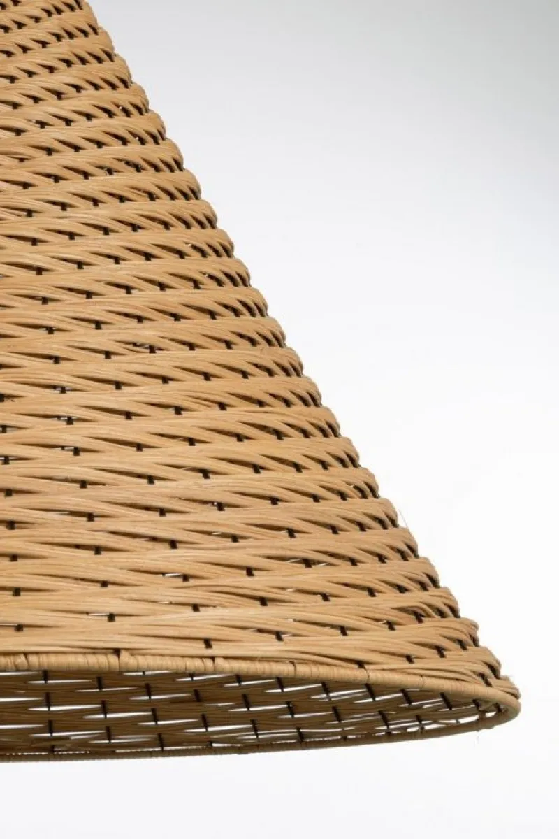 METALLO E RATTAN. LUNGHEZZA FILO 120 CM. LAMP. E27 MAX 40W, E27 8-11W COMP. FLUOR. INTEGR. RISP. EN., E27 28W ALOG. RISP. EN. LAMPADINA NON INCLUSA. IP20.