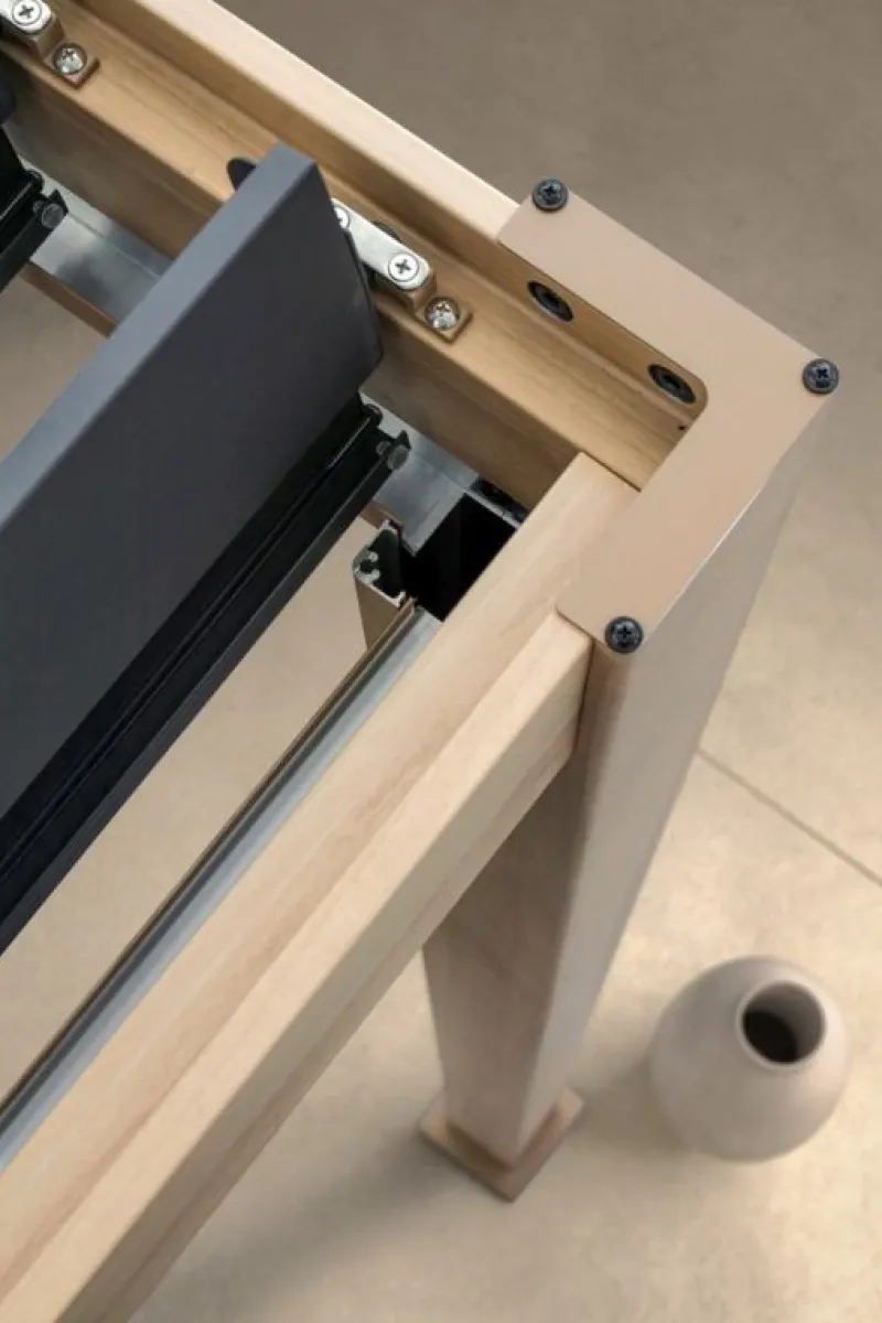 STRUTTURA IN ALLUMINIO. PALI PORTANTI 111X111MM, TRAVERSI 140X75MM. TETTO LAMELLARE VERNICIATO A POLVERE (POLIESTERE),ORIENTABILE TRAMITE DUE MANOVELLE. OGNI MANOVELLA CONSENTE IL MOVIMENTO INDIPENDENTE DEL SINGOLO SETTORE. LAME FRANGISOLE A DOPPIO STRATO 173X30MM. PALI PORTANTI E TRAVERSI CON APPLICAZIONE DI FILM IN PVC