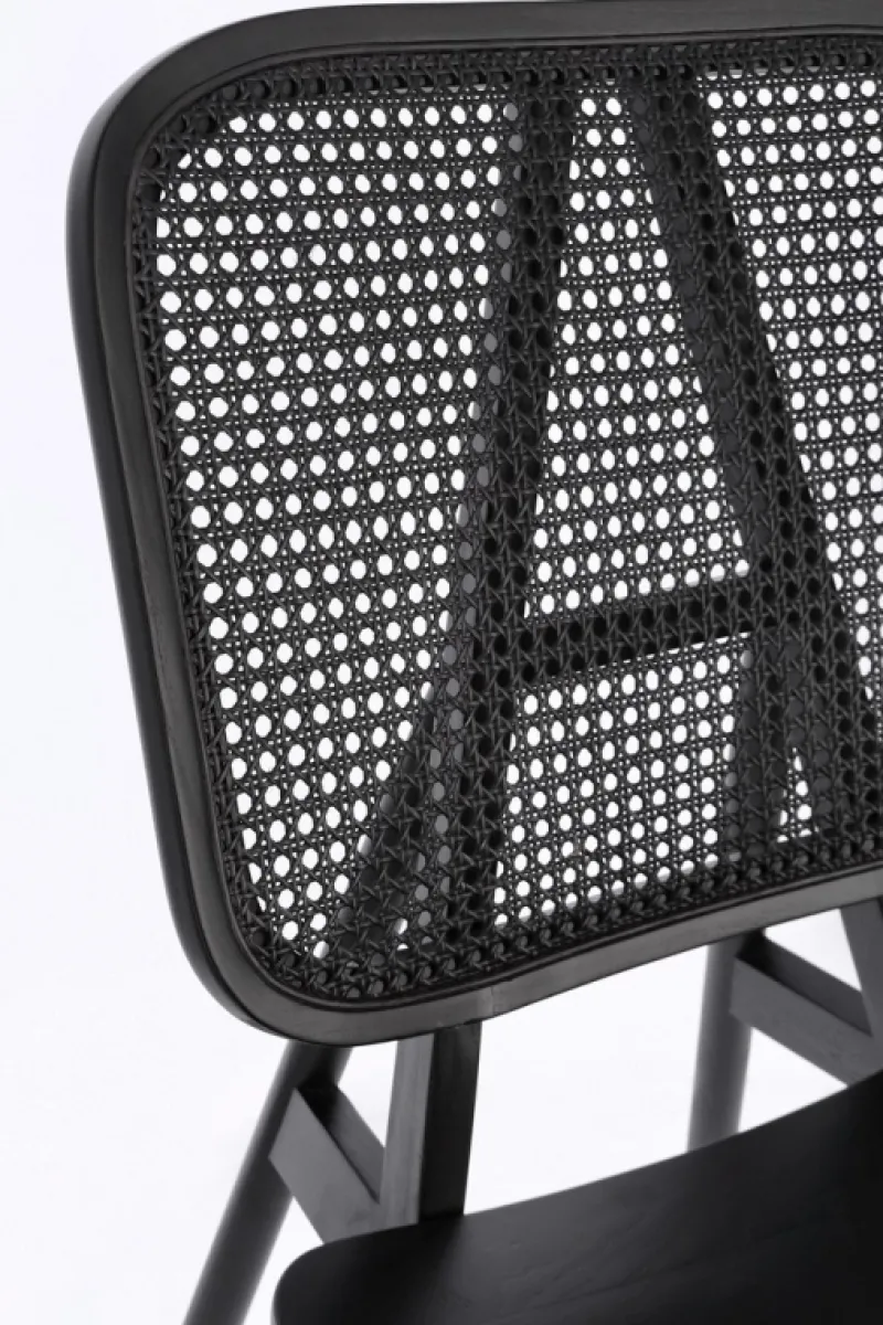 LEGNO TEAK, FINITURA NATURALE CON VERNICE A BASE DI NITROCELLULOSA. SCHIENALE CON INTRECCIO IN RATTAN. SOLO PER USO INTERNO.