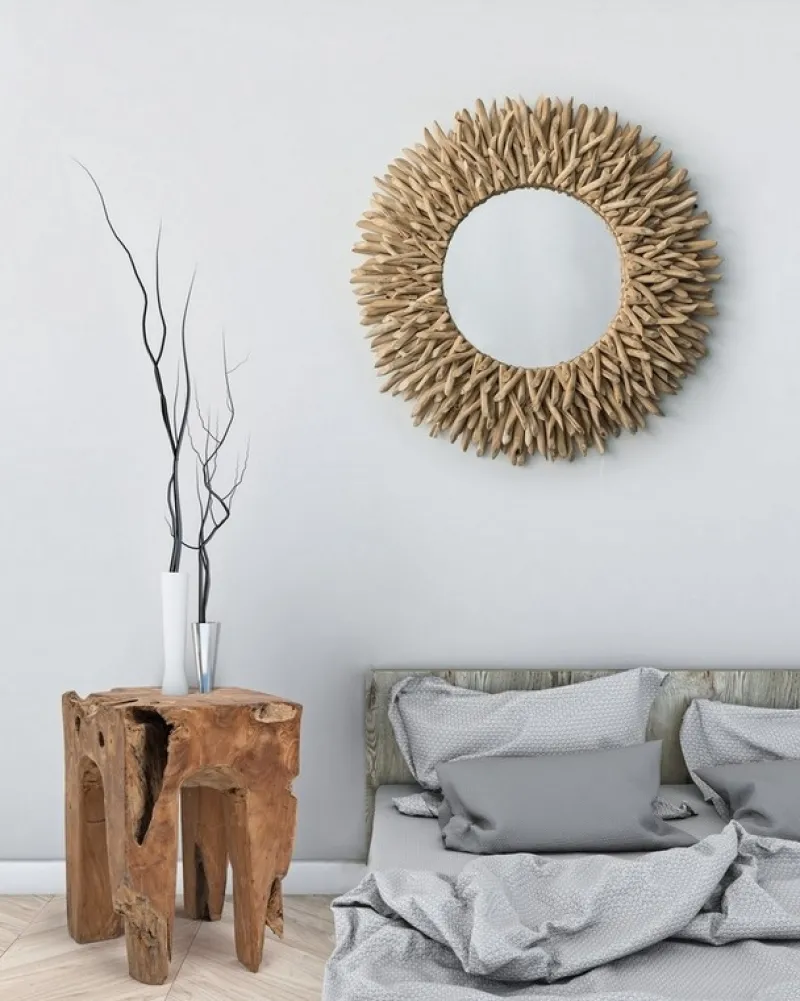 RAMI DI TEAK CON FINITURA NATURALE. MISURA SPECCHIO: Ø60