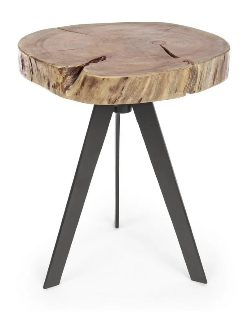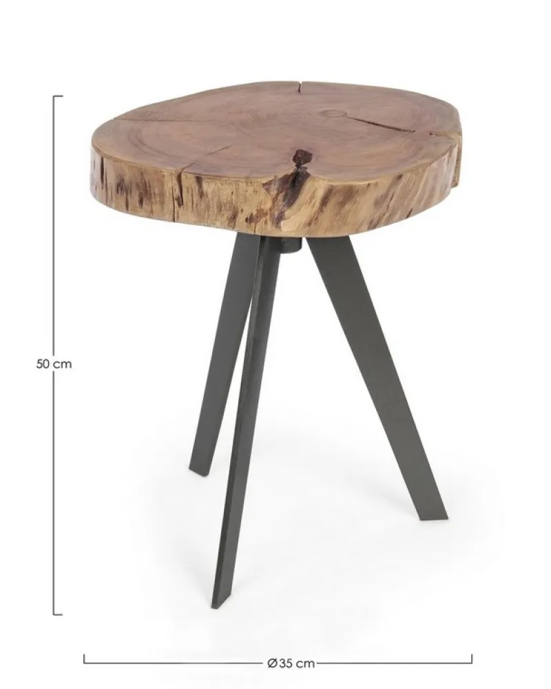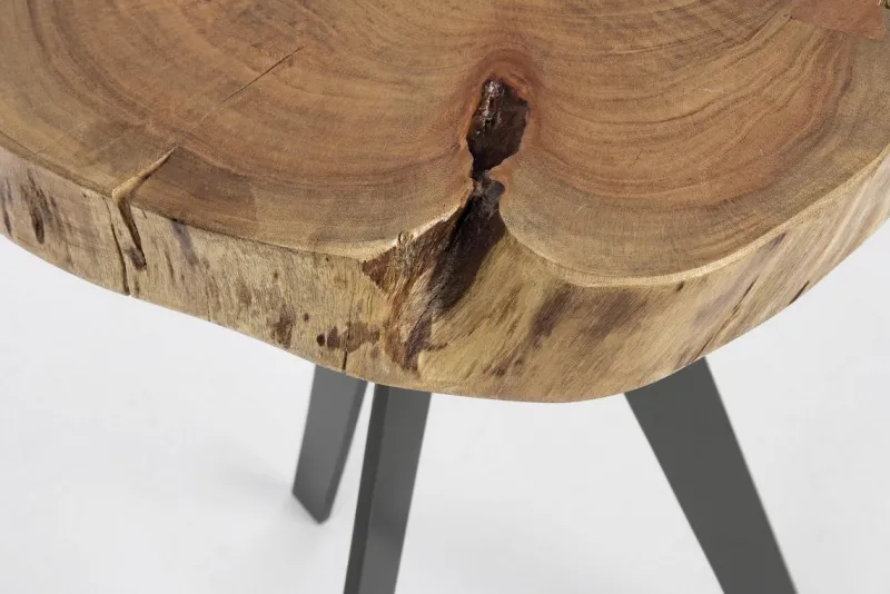 PIANO IN LEGNO D’ACACIA (SEZIONI ORIGINALI DI TRONCO), GAMBE IN ACCIAIO VERNICIATO A POLVERE EPOSSIDICA. FINITURA A BASE DI VERNICE POLIURETANICA. LE FORME E LE MISURE CREATE DAL LEGNO SONO SOLO INDICATIVE. TUTTI I PRODOTTI SARANNO DIVERSI L’UNO DALL’ALTRO.