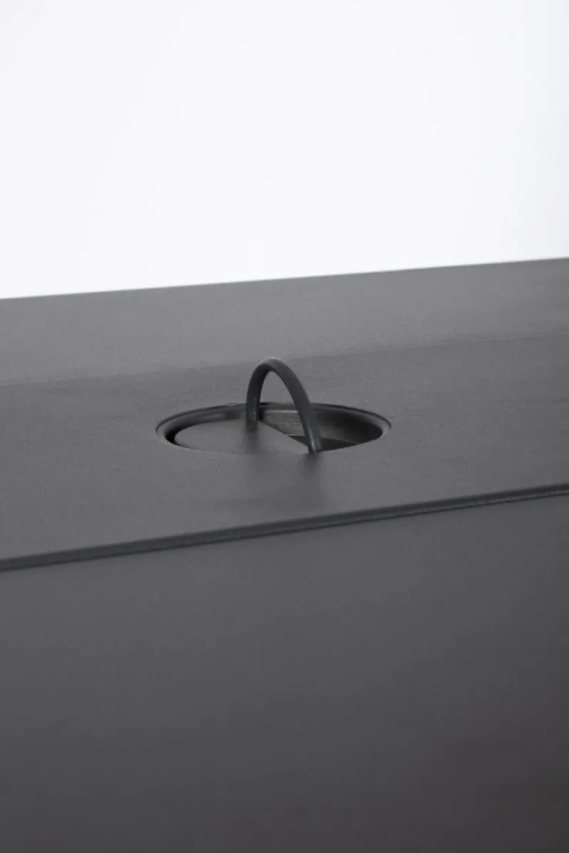 STRUTTURA IN ACCIAIO VERNICIATO (SPESSORE 0,8 MM). PARAVENTO PER CAMINO IN VETRO (SPESSORE 5 MM), VETRO REMOVIBILE. MISURE VETRO 55,8 X 15,7 X 14 CM. BRUCIATORE: LUNGHEZZA 38 CM. PROVVISTO DI COPERCHIO IN ACCIAIO VERNICIATO PER COPRIRE L’ARTICOLO QUANDO NON E’ IN USO. COMPLETO DI SASSI DECORATIVI IN ROCCIA LAVICA COLORE GRIGIO SCURO. PROVVISTO DI COPERTURA IN