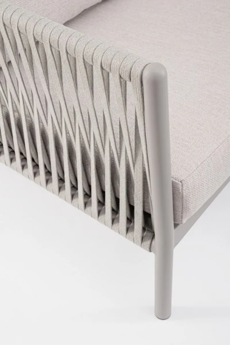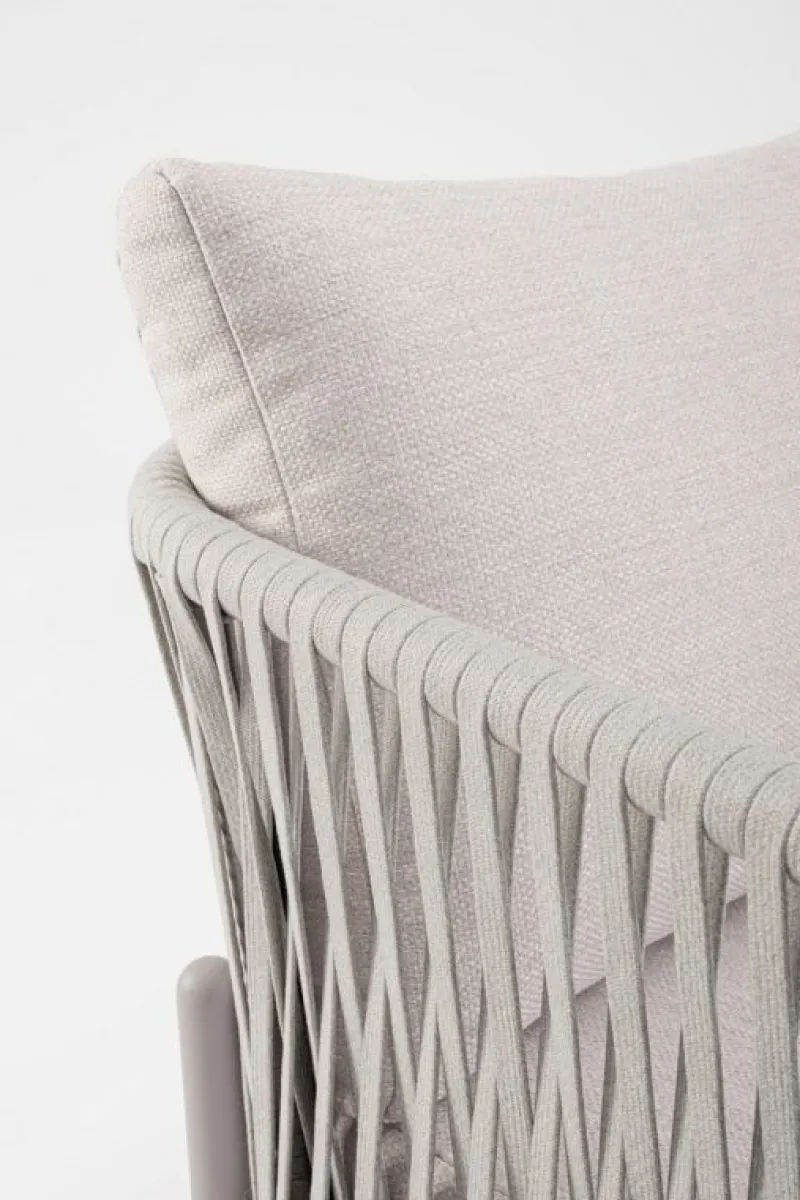 STRUTTURA IN ALLUMINIO VERNICIATO A POLVERE (POLIESTERE). INTRECCIO CON CORDE IN TETORON (100% POLIESTERE). CUSCINI SEDUTA E SCHIENALE SFODERABILI CON TESSUTO IDROREPELLENTE OLEFIN (100% POLIPROPILENE).