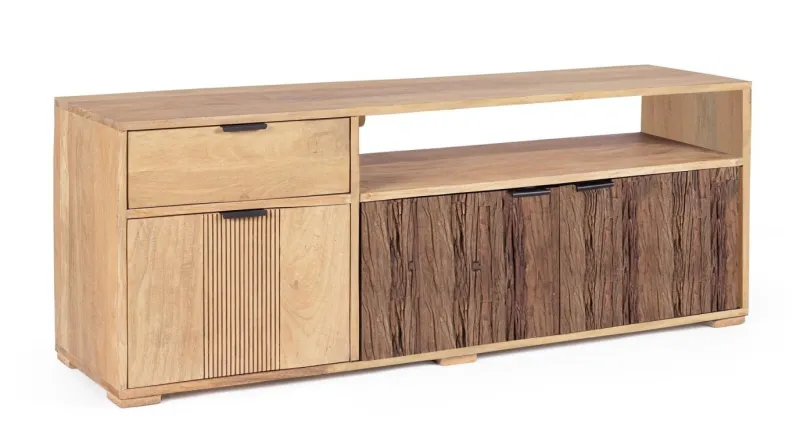STRUTTURA IN LEGNO MANGO, SCHIENALE IN COMPENSATO. FRONTALE ANTE IN LEGNO DI MANGO O RICICLATO. FINITURA ACRILICA PROTETTIVA. MANIGLIE IN METALLO. IL PRODOTTO IN LEGNO RICICLATO È CARATTERIZZATO DALLA PRESENZA DI TASSELLI IN LEGNO DI DIVERSE SPECIE E COLORE. EVENTUALI FESSURE, CREPE O IMPERFEZIONI, CHE POSSONO GENERARSI ANCHE NEL CORSO DEL TEMPO, SONO CARATTERISTICHE DI QUESTO MATERIALE E RENDONO OGNI PEZZO UNICO E ORIGINALE.