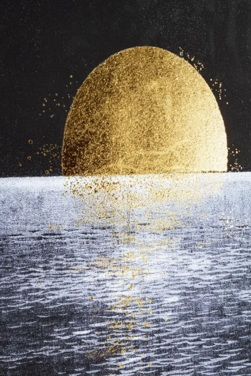 STAMPA SU TELA CON APPLICAZIONI AD OLIO E FOGLI DORATI, MDF.