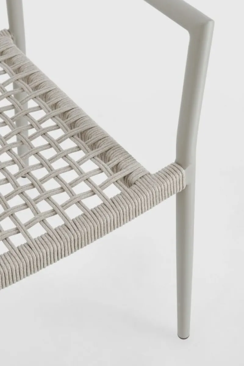 STRUTTURA IN ALLUMINIO VERNICIATA A POLVERE (POLIESTERE). INTRECCIO PER ESTERNO IN CORDA POLIESTERE. IMBALLO SENZA CARTONE.