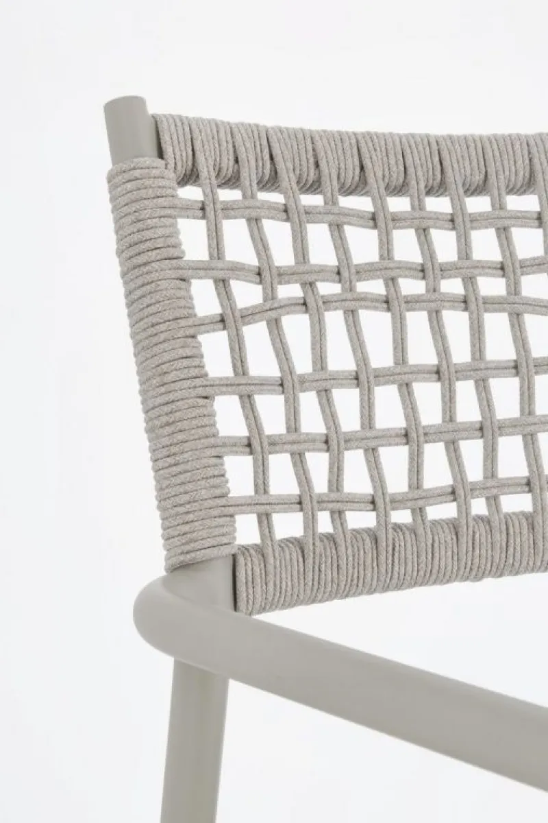STRUTTURA IN ALLUMINIO VERNICIATA A POLVERE (POLIESTERE). INTRECCIO PER ESTERNO IN CORDA POLIESTERE.