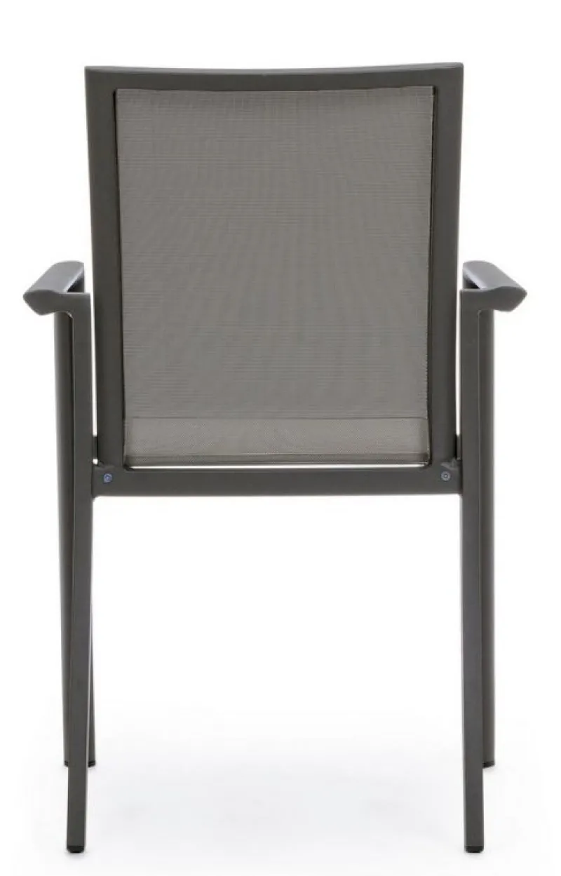 STRUTTURA IN ALLUMINIO, VERNICIATO A POLVERE (POLIESTERE). SEDUTA E SCHIENALE IN TEXTILENE 1X1. IMPILABILE.