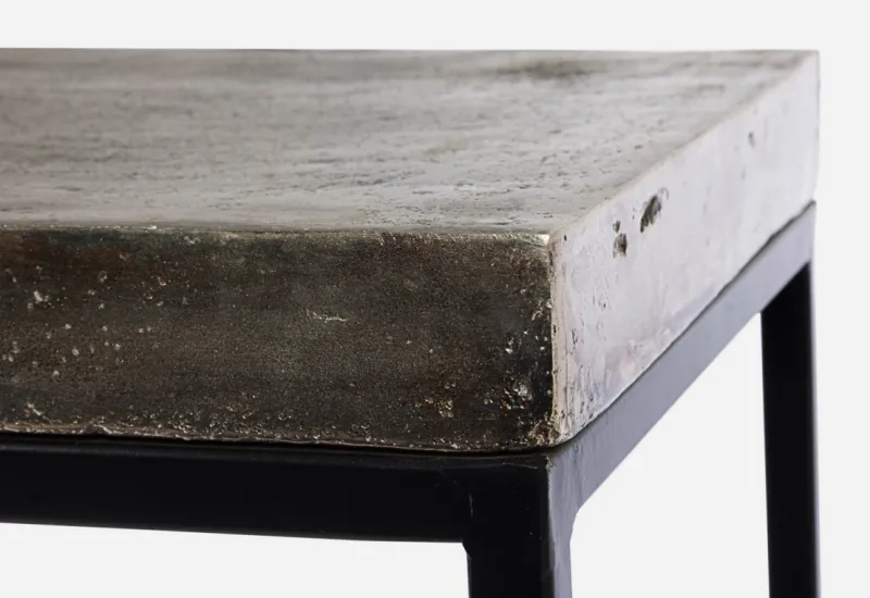 STRUTTURA IN ACCIAIO VERNICIATA A POLVERE EPOSSIDICA. PIANO IN ALLUMINIO CON FINITURA PLACCATA ED ANTICATA.