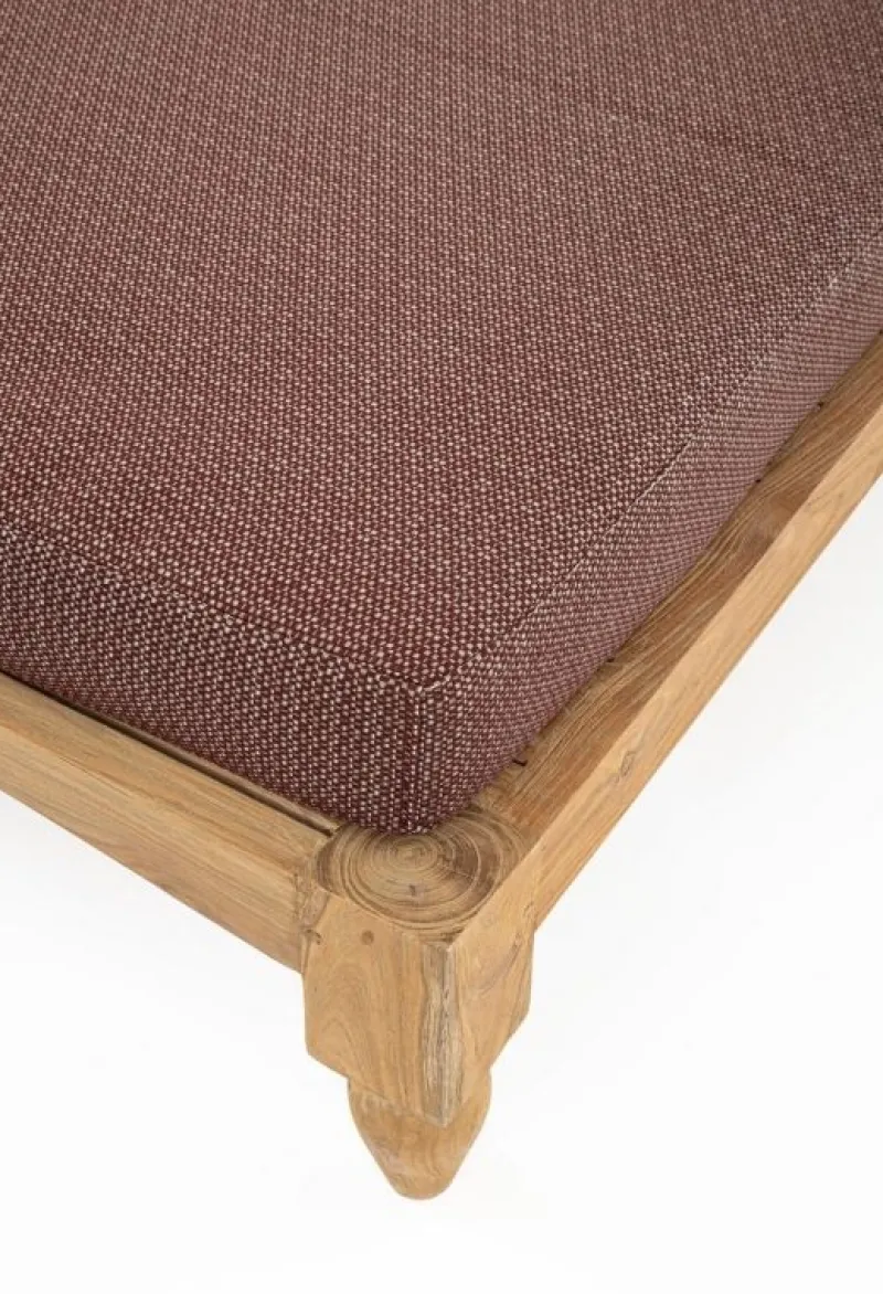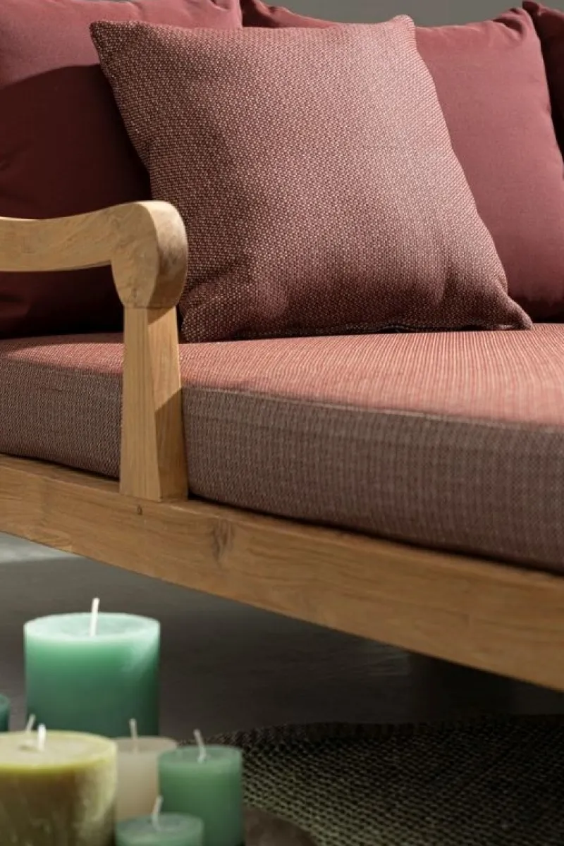 LEGNO TEAK FSC 100%, FINITURA SABBIATA ED ANTICATA A BASE D’ACQUA. CUSCINI SFODERABILI IN TESSUTO IDROREPELLENTE SUNPROOF OLEFIN (100% POLIPROPILENE). SI RACCOMANDA DI NON ESPORRE L’ARTICOLO ALLA LUCE DIRETTA DEL SOLE ED ALLE INTEMPERIE. QUESTO PRODOTTO È CARATTERIZZATO DALLA PRESENZA DI TASSELLI IN LEGNO DELLA STESSA NATURA. EVENTUALI FESSURE, CREPE O IMPERFEZIONI,