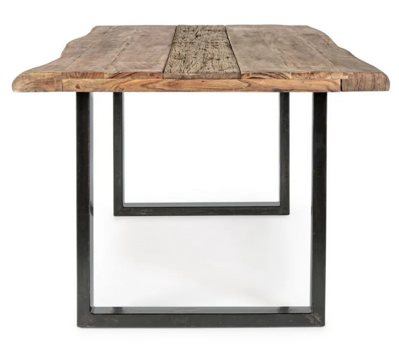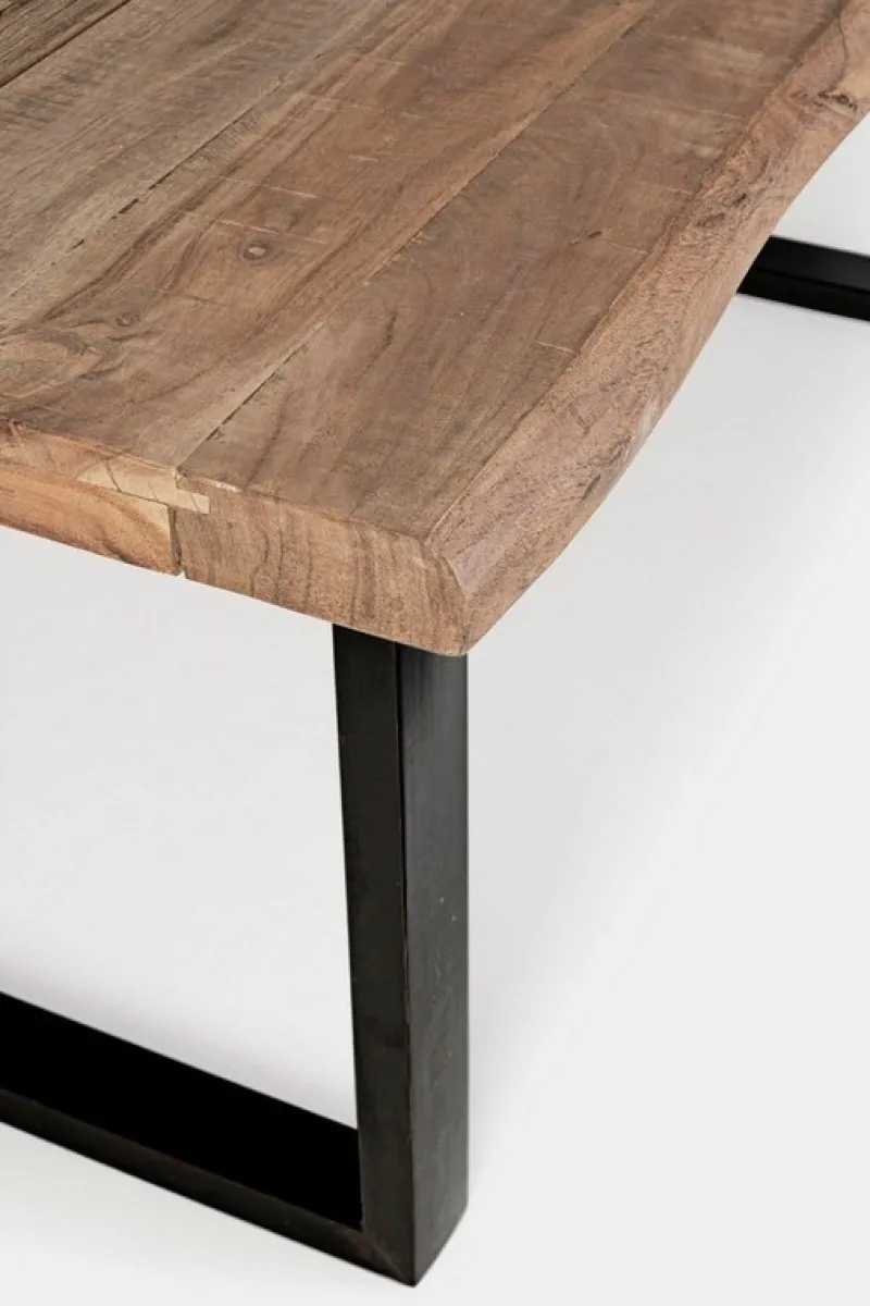GAMBE IN ACCIAIO VERNICIATO A POLVERE EPOSSIDICA. PIANO IN LEGNO DI ACACIA (SEZIONI ORIGINALI DI TRONCO). INSERTO CENTRALE IN LEGNO RICICLATO. FINITURA ACRILICA PROTETTIVA. ESSENDO UN PIANO LAVORATO A MANO, LE FORME E LE MISURE DEL LEGNO SONO SOLO INDICATIVE. TUTTI I PRODOTTI SARANNO DIVERSI L’UNO DALL’ALTRO. GAMBE DA ASSEMBLARE.