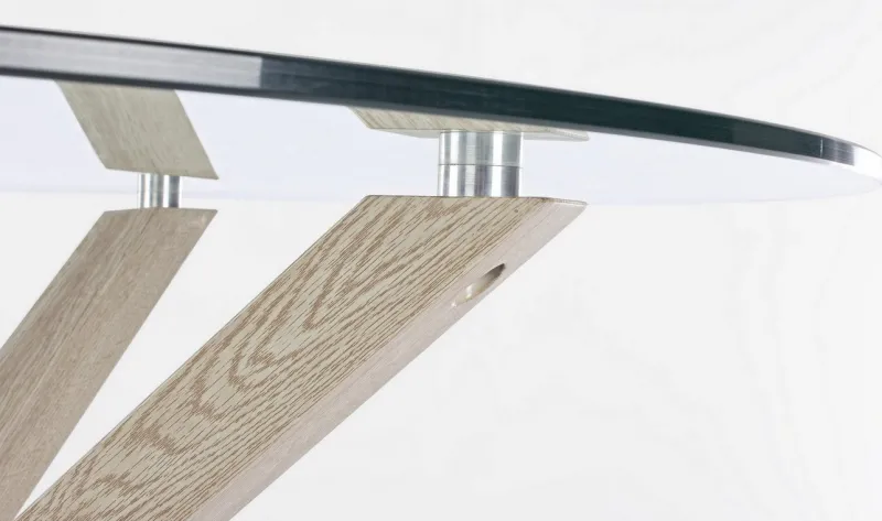 GAMBE IN ACCIAIO FINITURA EFFETTO LEGNO NATURALE. PIANO IN VETRO TEMPERATO SPESSORE 10MM. GAMBE DA ASSEMBLARE